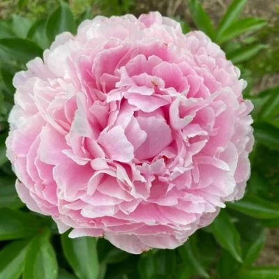 Особенность этого сорта пиона заключается в его крупных и махровых цветках, диаметром примерно 20 см. Окраска цветков бело-розовая, с небольшим насыщением цвета. Интересным фактом является то, что цветки могут быть двухцветными, что добавляет им оригинальности. Общее описание цветков - объемное, а их форма привлекает внимание: верхние лепестки узкие, а нижние - широкие.