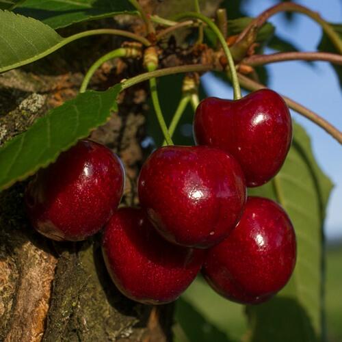 Деревья черешни Лапинс сильнорослые, имеют среднюю высоту. Первые несколько лет интенсивно растут. Ветки направлены вверх, образуя шаровидную крону, которая нуждается в формировании и обрезке. Листья светло-зелёного цвета, гладкие, обрамлены небольшими зазубринами, густо укрывают дерево.