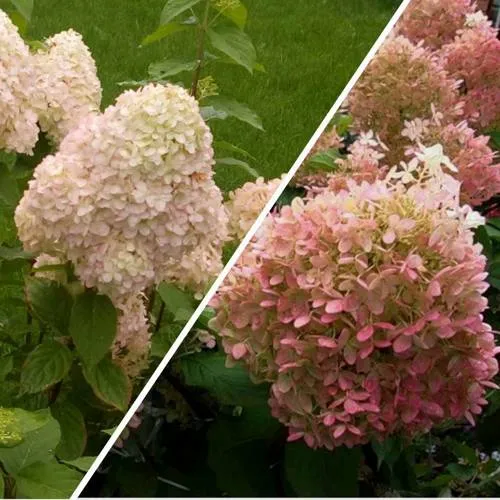 Соцветия "Селекшн" – это настоящая жемчужина! Они формируются в ширококонических, почти шаровидных метелках длиной около 30 см. Начинаются цветения с белоснежных оттенков, которые постепенно переходят в нежные розовые тона, создавая волшебное зрелище с июля до октября. Гортензия проявляет свою декоративность даже без цветков, благодаря красивым зеленым листьям и гармоничной форме куста.